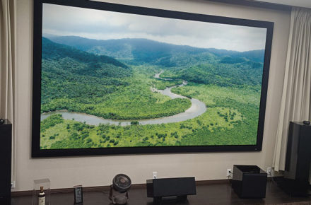 ご家族で目一杯の大画面で映画を楽しみたいとの要望がございましたので、投射距離ギリギリの120インチをご提案いたしました。
