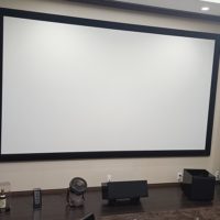 スクリーンは「専用ルーム」の為、平面性の良い「パネルスクリーン」にしました。4Kプロジェクター「VPL-VW275」のクオリティを最大限引き出しています。