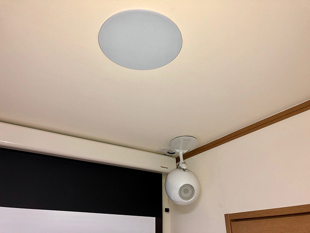 天井にスピーカーを埋め込み設置することで視覚的な圧迫感を抑えられ、すっきりとした印象になりました。
