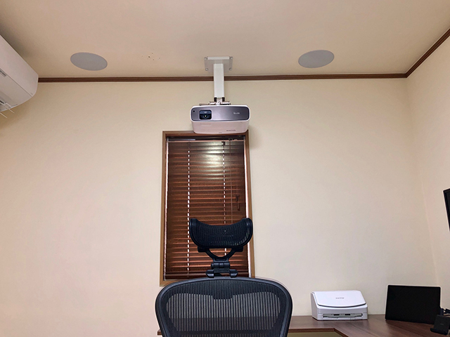プロジェクターやスクリーンも部屋全体のデザインに合わせて配置しており、普段の生活空間に違和感なく馴染むよう工夫しております。