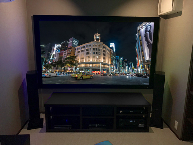 スクリーンは張り込み式の95インチ、サラウンドは5.1.4chに対応し、Dolby Atmosによる立体音響を実現。