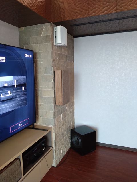 大きいサイズの埋め込みスピーカーを選択したことで、フロントスピーカーとのバランスも取れて、壁と天井面を多用したにもかかわらず、クオリティの高いサラウンドシステムを構築する事ができています。