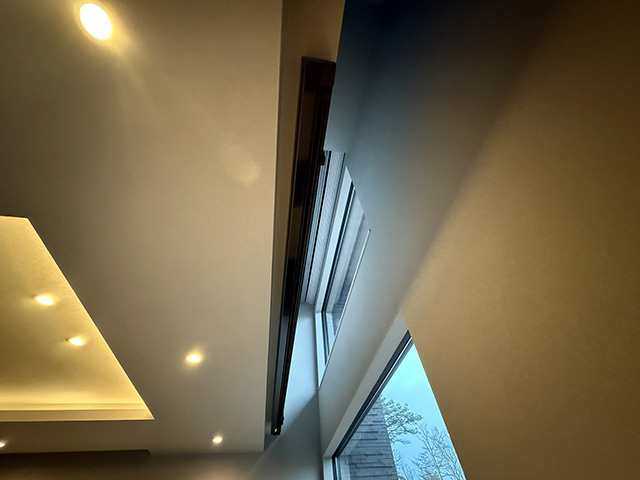 サラウンドスピーカーは、天井懐に十分なスペースが確保できたため、バックBOX仕様の弊社オリジナル埋込スピーカー「HomeTheater Factory SP-525ICB」を採用しました。