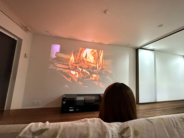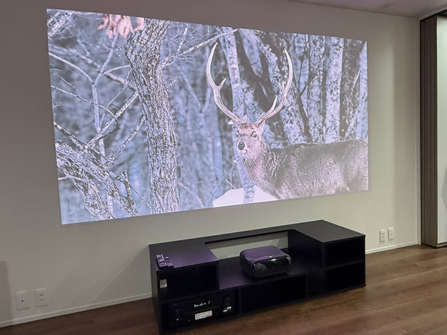 耐外光スクリーンと比較すると明るさ面ではやや劣るものの、一般的な壁紙よりも高い均一性で映像を映し出すことができ、日常使いに適した見やすい映像環境を実現しています。
