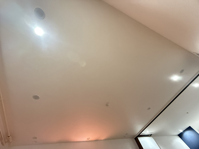天井面には、Home Theater Factory製の超小型埋込スピーカー「HF-SP250IC」を7本採用し、すべて天井内にすっきりと収めています。