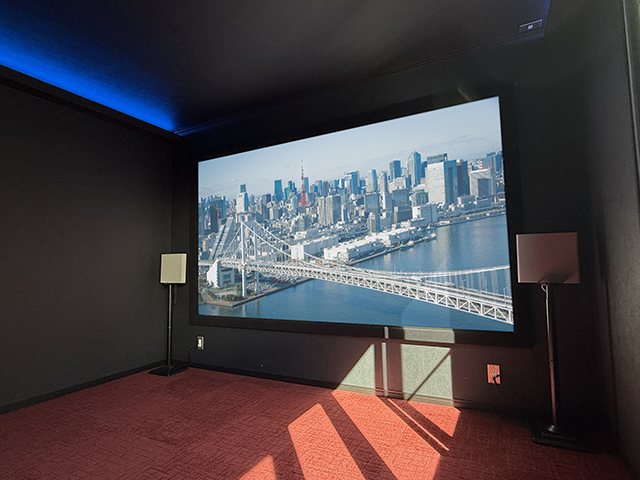 120インチの大画面と平面性に優れたパネルスクリーンに加え、壁・天井を黒系で統一することで、暗室時には非常にコントラストの高い映像表現を実現しています。