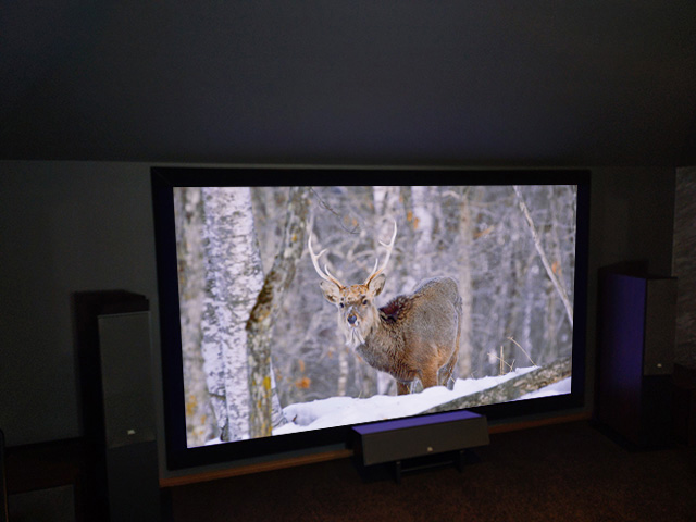 今回ご紹介するのは、ご新築の「屋根裏部屋的」な専用ルームに導入したホームシアターです。
