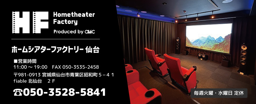 東北・宮城のホームシアター専門店はホームシアターファクトリー仙台 ※当店では、ご来店時におけるお客様の目的に応じた対応をスムーズに行う事と安心・快適な 店舗のご利用を目的としまして、「ご来店予約フォーム」のご利用をお願いしております。 東北のホームシアターファンに向けて新規オープン!! これまで全国で6,000件以上のホームシアターを手掛けてきたノウハウを活かし、既存のお宅から新築物件にいたるまで、厳選されたオーディオ・ビジュアル機器を駆使したシステムで、「お客様の人生に潤いを与える」そんなご提案を行って参ります。 「お客様のライフスタイルに合わせて最適なホームシアター、オーディオ・ビジュアル機器をご提案する」をコンセプトに、店内には最新8Kプロジェクターや最新AVアンプ(最大13ch)を用いた「専用室シアター」と、4Kプロジェクターとテレビを使った「2wayリビングシアター」、超短焦点プロジェクターと音が出るスクリーンを用いた「スタイリッシュシアター」の3つのコーナーが設けられており、導入時のイメージを実感できる体験型の店舗構成となっています。 是非ともお気軽にご来店くださいませ。 ※店内の詳細はこちら ホームシアターファクトリー仙台 住所〒981-0913 宮城県仙台市青葉区昭和町5−41 fiable 北仙台 2F 電話050-3528-5841 FAX050-3535-2458 定休日毎週火曜・水曜日(※年末年始を除く) 営業時間AM11:00~PM7:00(※予約推奨) e-mailsendai@avac.co.jp 店舗アクセス ※JR仙山線北仙台駅 徒歩1分 ※地下鉄南北線 北仙台駅 徒歩2分 【駐車場】提携駐車場がございます。 ※詳細はこちら