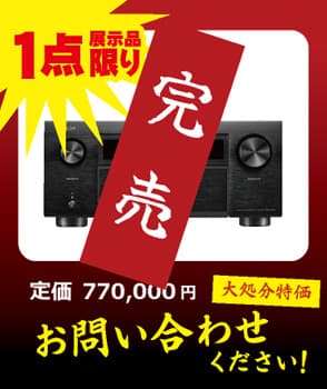 延長!大処分祭 IN琉球【~10月31日(金)】 2025.09.30 Tweet Share 展示品大幅入れ替えの為開催していた「大処分祭 IN琉球」ですが、好評のため延長致します! 期間中はここだけの特別価格でご提供! 展示品の為、全て現品のみ”1点限り”のご用意となっております。 気になる価格は是非店頭でご確認下さい。早い者勝ちです! (※店頭限定のセールとなります。遠方への配送等は承っておりませんので予めご了承くださいませ) 【日時】~2025年10月31日(金)迄 場所:アバック琉球 延長!大処分祭 IN琉球 製品リスト(※全て税込) 4K プロジェクター SONY VPL-XW5000(W) 4K プロジェクター SONY VPL-XW7000 AVアンプ DENON AVC-A10H AVアンプ SONY STR-AN1000 UHD BDプレーヤー REAVON UBR-X110 プリメインアンプ radius RAVT11 ストリーマー Bluesound NODE(B) アナログプレーヤー DENON DP-3000NE サブウーファー Paradigm DEFIANCEV10 スピーカー(ペア) Monitor Audio GOLD200-5G(PE) スピーカー(ペア) Monitor Audio SILVER100-7G(SW) スピーカー(ペア) Monitor Audio SILVER200-7G(ASH) スピーカー(ペア) JBL L82CLASSIC(ORG) スピーカー(ペア) JBL 4309 スピーカーシステム JBL L42MS スピーカー(ペア) JBL STUDIO680 スピーカー(ペア) KEF Q750(WN) スピーカー(ペア) KEF Q3META(SB) スピーカー(ペア) KEF R5META(BK) スピーカー(ペア) Paradigm PREMIER700F(EG) スピーカー(ペア) Paradigm FOUNDER80F(MC) スピーカー(ペア) ELAC UFR52 ワイヤレススピーカー BLUESOUND PULSEFLEX2i(B) オーディオラック HAMILEX G3623 展示処分超特価は店頭にて掲載しております。 ご不明な点はアバック琉球までお問い合わせください。 アバック琉球:098-943-3754 ご来店の際は、事前にご予約をいただけるとスムーズにご案内できます。 来店ご予約フォーム Tweet エントリーホームシアター体感イベント DENON AVアンプ... DENON AVアンプ AVC-X2850H & Homet... 関連記事一覧 マイホームシアター366 マイホームシアター451 マイホームシアター452 マイホームシアター450 マイホームシアター393 マイホームシアター836 マイホームシアター453 マイホームシアター396 マイホームシアター783
