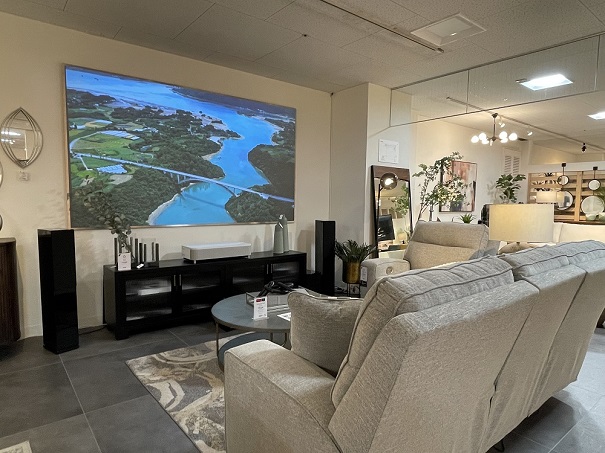 「Ashley(アシュレイ)」はアメリカ家具売上高No,1ブランドとして世界各国で販売展開を行う総合インテリアブランドです。横浜に展開する店舗は国内最大級の面積を誇り、お部屋ごとのトータルコーディネートが可能となっています。今回、当社が機材提供し、ホームシアターの視聴・体験ができる環境を整えていただきました。