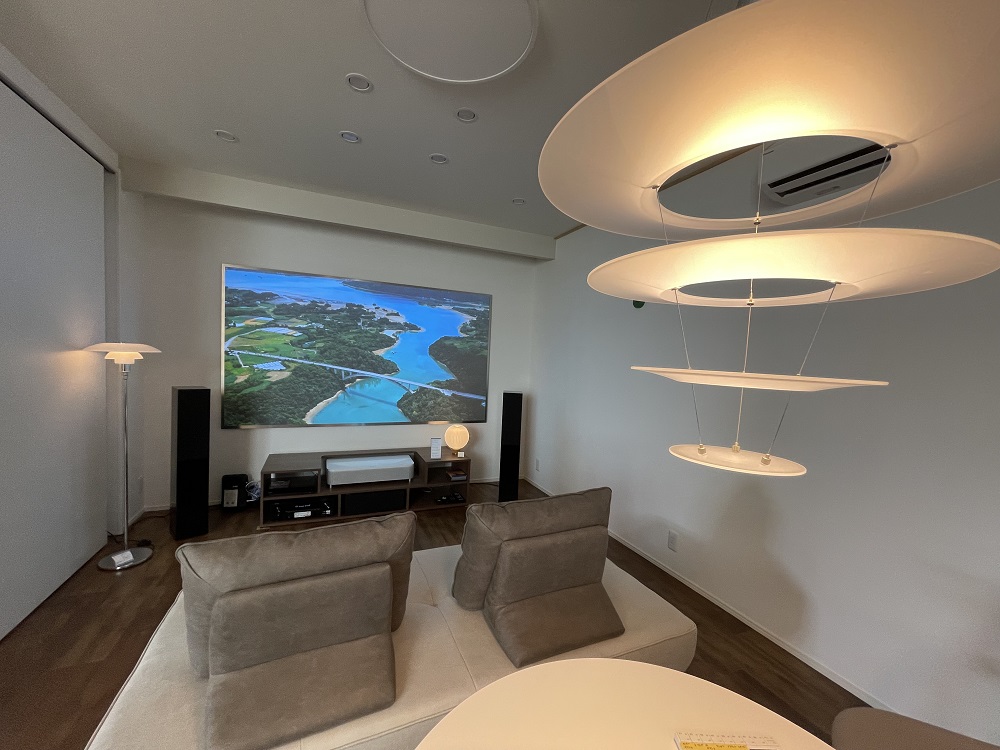 「シバタ照明」は一般住宅からホテル、旅館等に向けた照明器具を取り扱う専門店で、ベテラン照明士の店長を始め、経験を積んだ若手や女性スタッフも在籍するお店です。今回店内に専用スペースを設けていただき、ホームシアターが視聴・体験できる環境と、機材を販売できる体制を整えていただきました。照明のコーディネートも可能なホームシアターショップが誕生しました。