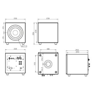 ⚫ 6.5インチ(16.5cm)のウーファーユニットを搭載した、コンパクトなサブウーファー。どんなスピーカーとも組み合わせやすいシンプルなデザインと、美しいピアノフィニッシュ仕上げの筐体も目を引きます。