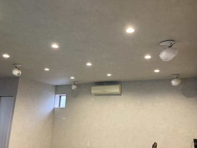 天井面に、サラウンドスピーカー、トップスピーカーを設置致しました。