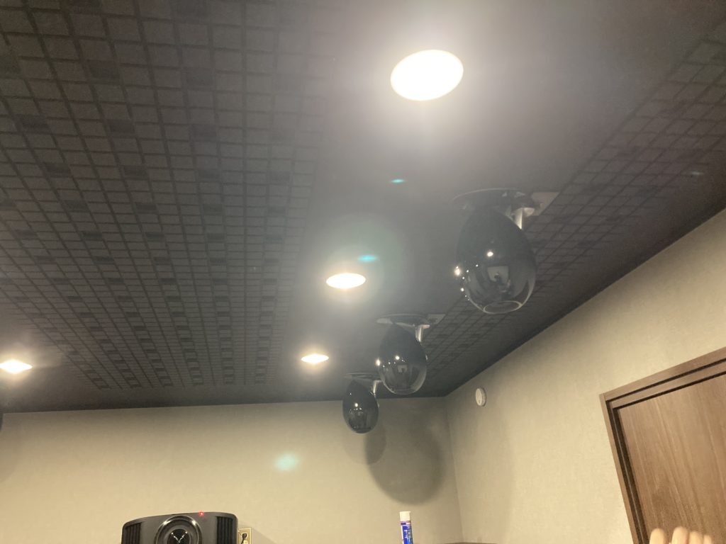 天井には、サラウンドスピーカー、トップスピーカーを設置致しました。
