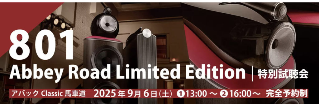 【アバックClassic馬車道】9月6日(土)B&W『801 Abbey Road Limited Edition』特別試聴会開催!残り前半2席、後半1席となります。ご検討の方はお早めにお申し込みください。