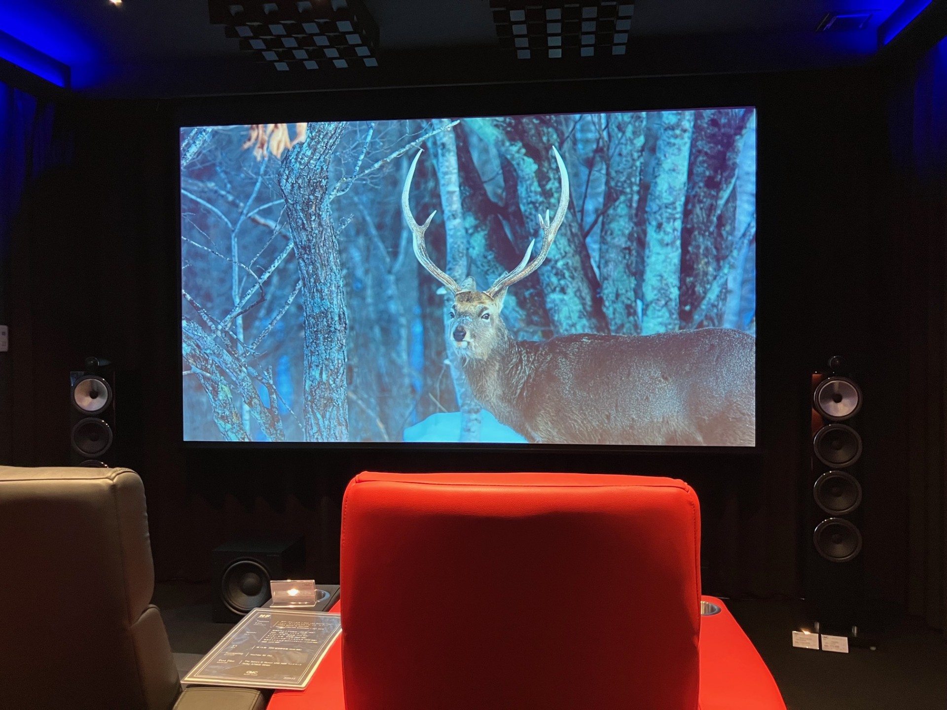 以下は、Victor DLA-V900Rで120インチスクリーンに投影した写真。この写真で画質の判断はできませんが、白側の階調が良く出ているのを直接見て頂ければと思います。