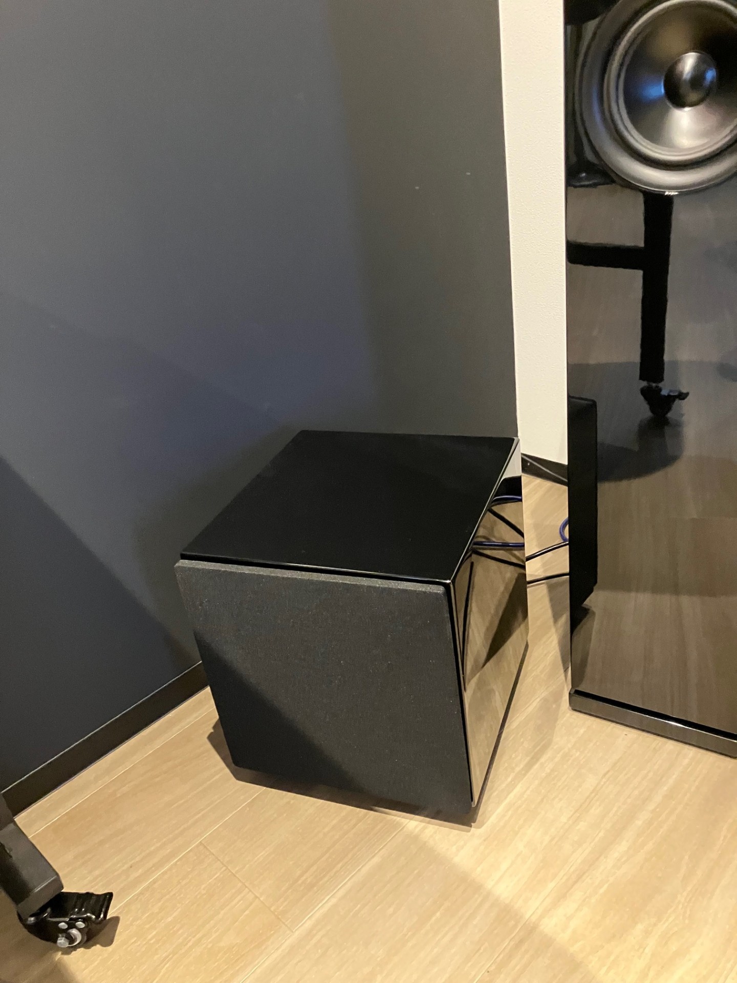 こちらは、従来から設置している少し小さいHometheater Factory HF-SW650W(6.7kg W230 × H250 × D253(mm)※フット含む)です。