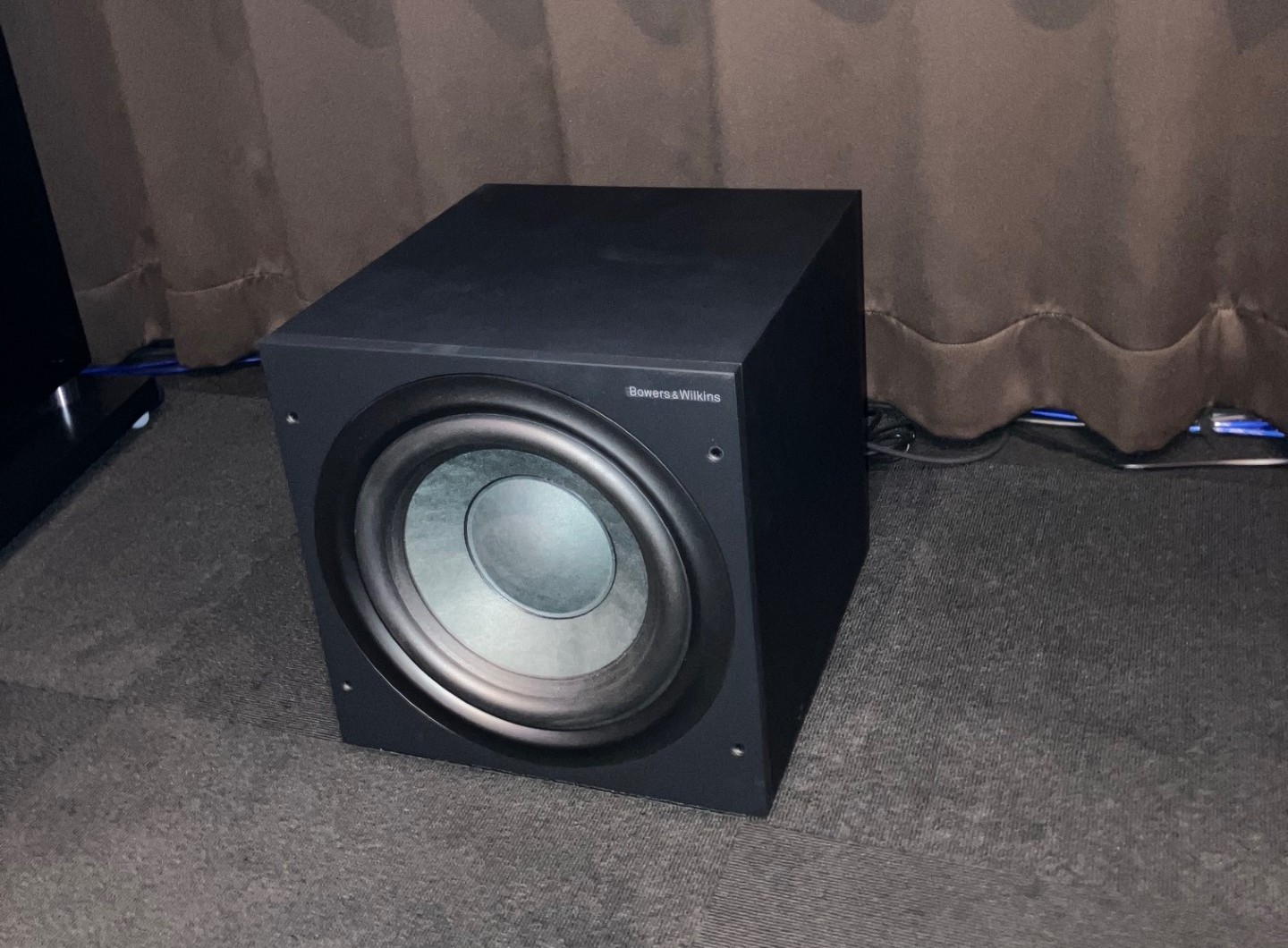 このサブウーファーは、専用室での2個使いでDENON/AVC-A10HとB&W/702S3との組合せで展示しています。120インチの大画面に対しても負けず低域を支える役割を十分果たしています。