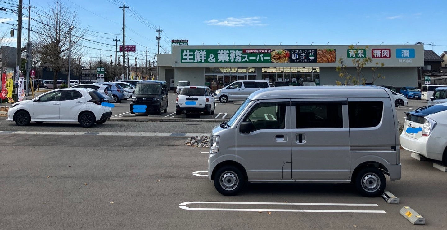 まず、目印として分かりやすいのが「業務スーパー」の緑の看板です。