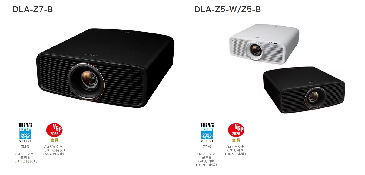 Zシリーズ「DLA-Z7/Z5」では、2018年発売の究極の黒を描く「DLA-X990R」との新旧比較、