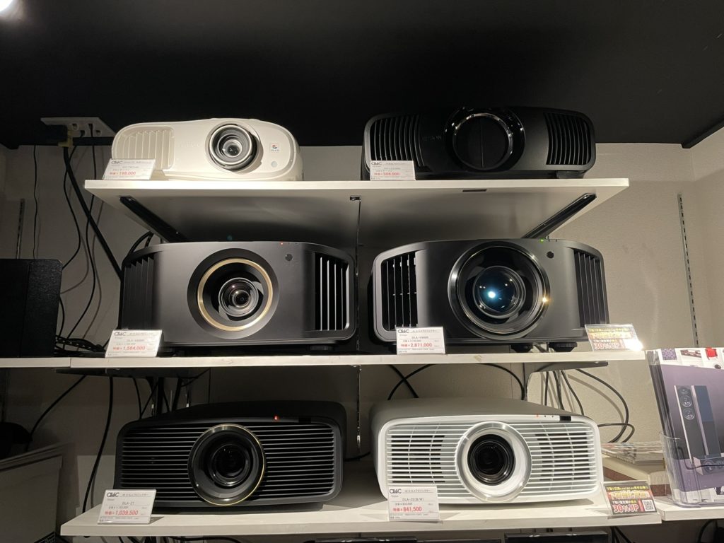 加えて、後方投射型 最新4K/8Kプロジェクターも常設展示しておりますので各種モデルでの比較視聴も可能です!!