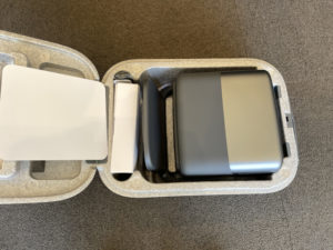 パッケージは収納して持ち運びしやすい取っ手がついたケース。