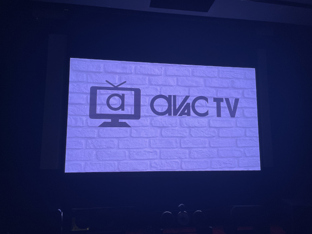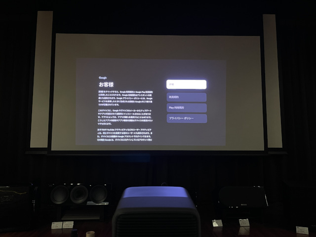電源を入れ設定を開始、スクリーンは手前の120インチに合わせていきます。
