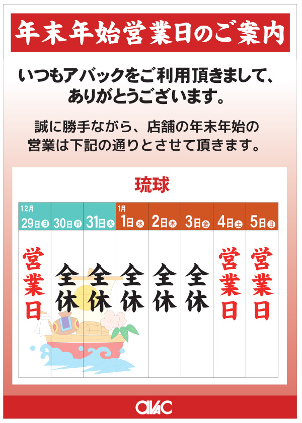 2024年アバック琉球をご利用いただきありがとうございました。