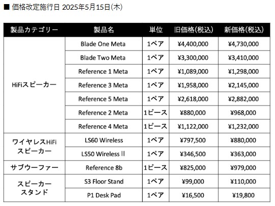残念ながらKEF(ケーイーエフ)も一部製品で5/15から価格改定が行われます。