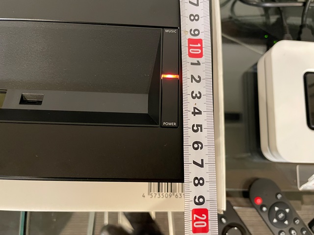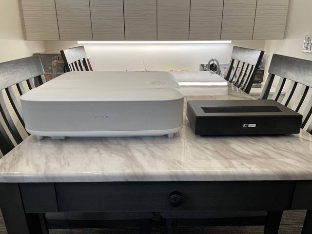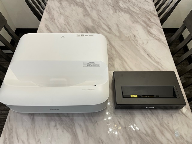 EPSONの超短焦点プロジェクター EH-LS650 と比較するとこんな感じ。