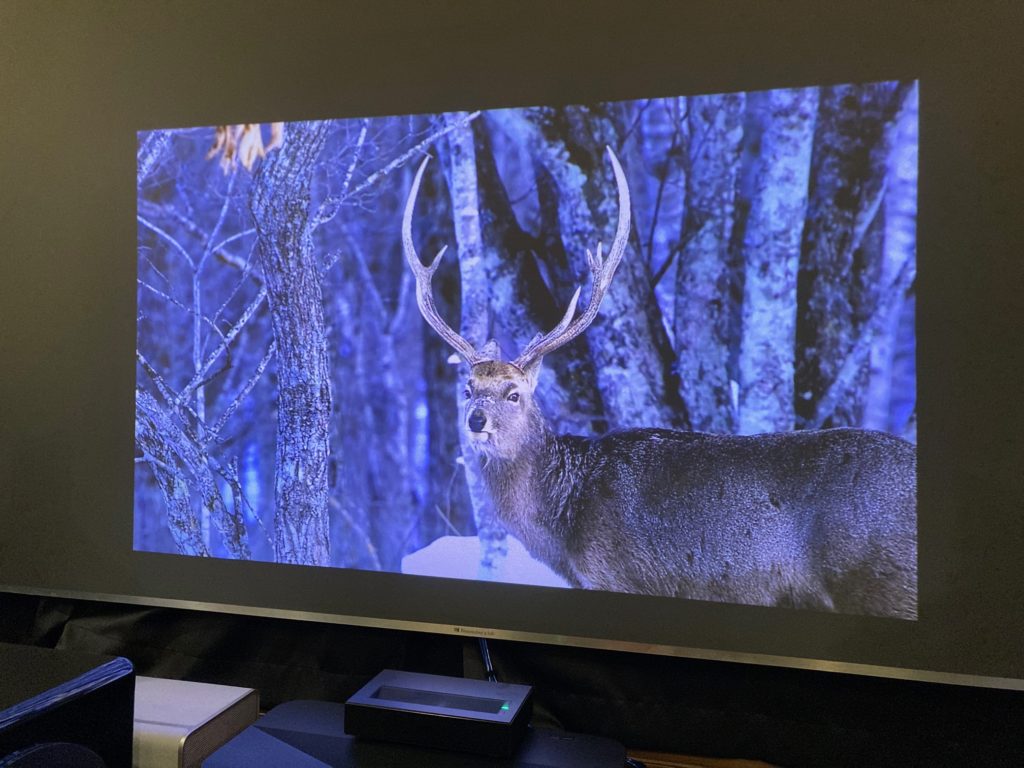 明るさとしては、650 ANSIルーメン のため最近のモデルの中では、大人しめの明るさですが、色乗りがしっかりしているため、スペック上の数値よりも明るくしっかり見られる印象です。