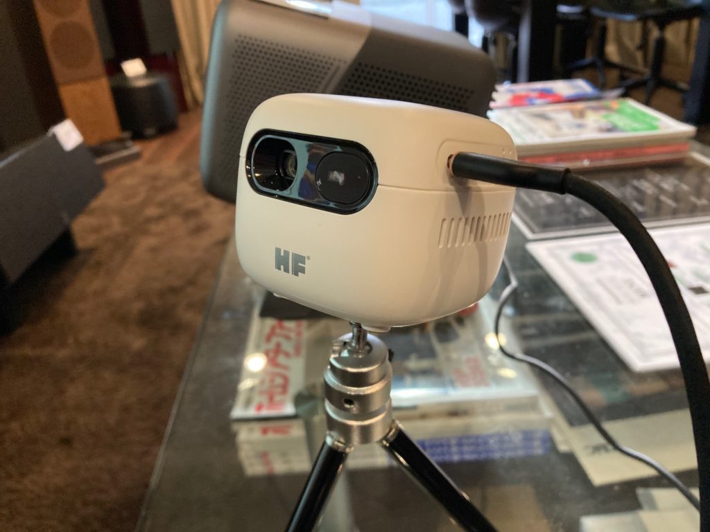 先日ご紹介いたしました 超小型・超短焦点プロジェクター HF-VP10US に続き、手のひらサイズのモバイルプロジェクター HF-VP05Q を発売いたしました。