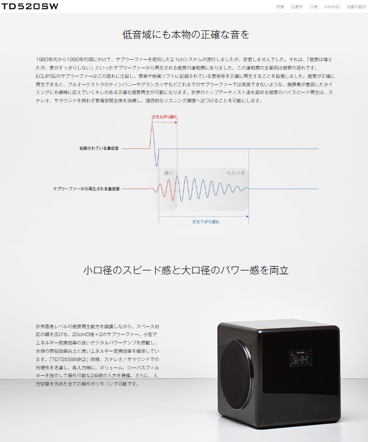 実はECLIPSEの製品群の中でサブウーファーはスピーカーと同じ理論を採用しており「床は振動しなくてもちゃんと低音はでる」という特殊な特性を持っています。