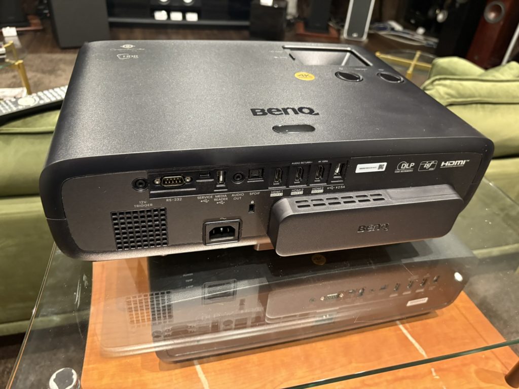 X10-4Kは100インチ:約1.77m、120インチ:約2.12mと言う事でそれぞれ+50cmの長さで対応でき、本体に存在しない縦レンズシフトやこの時期にはなかったデジタルズームや自動補正機能を駆使すれば、設置性は上がり、Andoroidもversion11になりますので、これら独自OSを使用している機種の後継としては十分なものとなります。(大きく映して小さくする方法ですね)