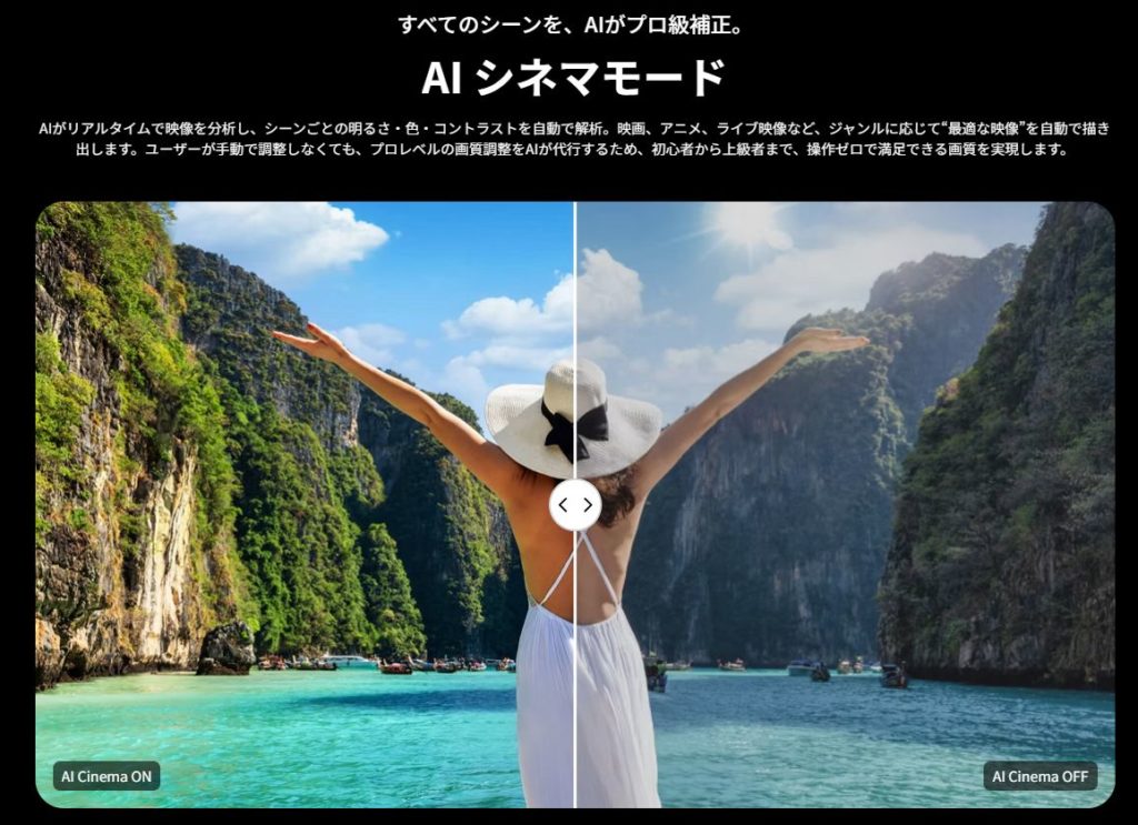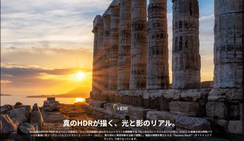 性能的には唯一DolvyVisionに対応していないのが残念ですが、DolbyVisionはテレビ用のシステムがベースで色が固定化されてしまう分、プロジェクターの良い意味での色表現を狭めてしまう部分があり、いいところ・悪い所両方あるように思えます。この辺もVICTORと同じAIで処理をしているので問題はないと思います。