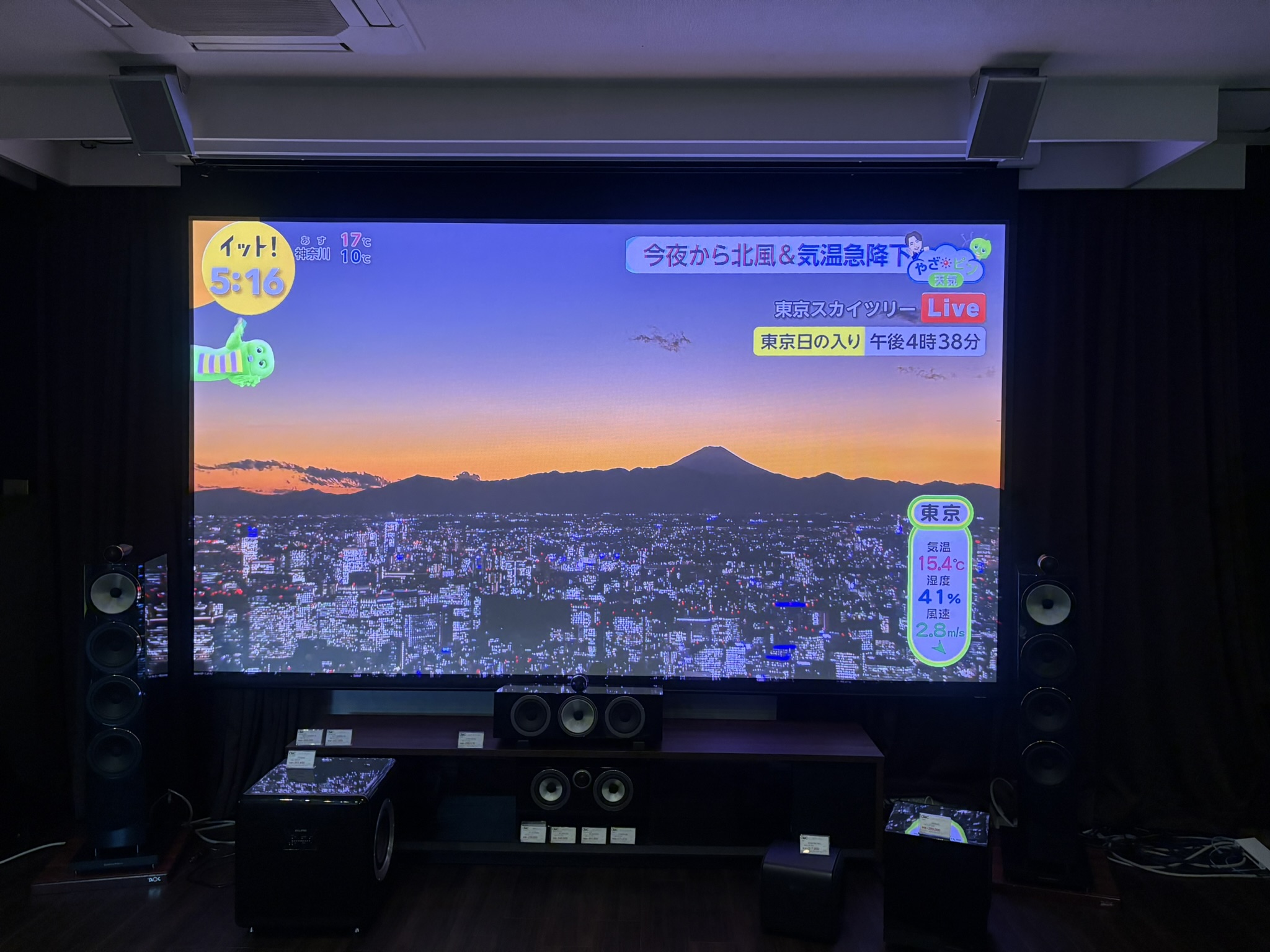 なお、今月末にはEPSONのEH-QL3000(6000lm)を持ち込んでこのスクリーンと組み合わせしますので、イメージは掴めるかと思います。