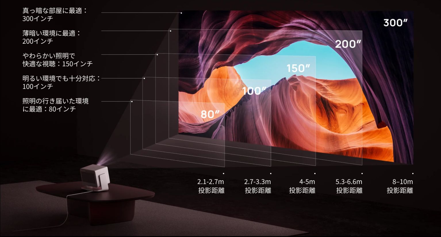 投影サイズ:40~300インチ
