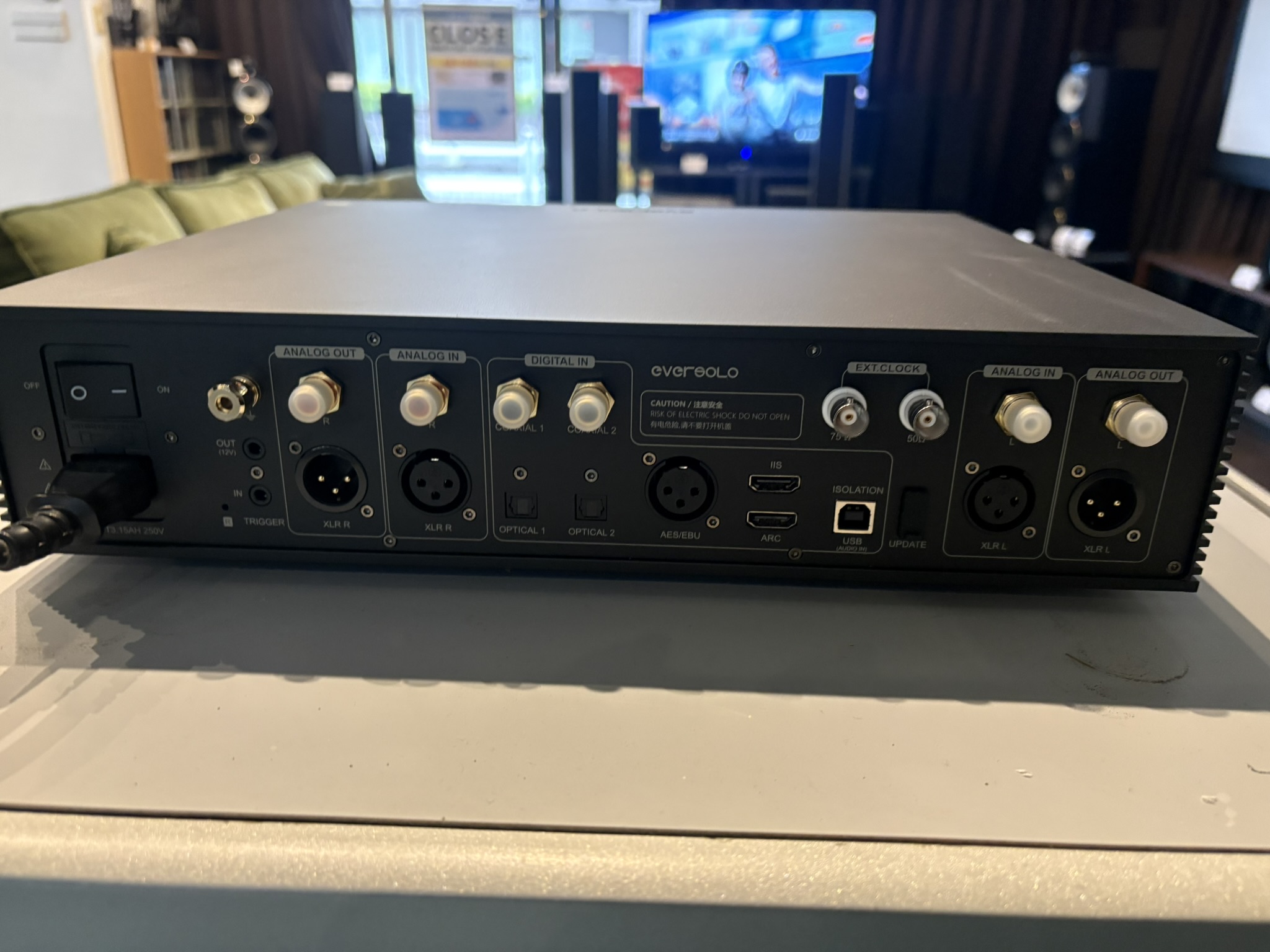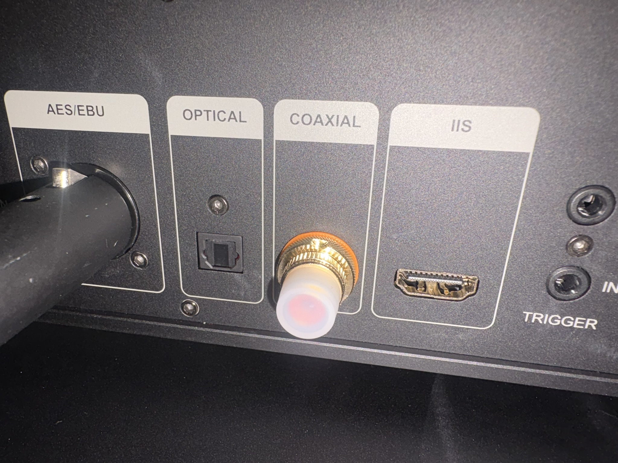 光デジタルと同軸入力が各2系統、アイソレートAES/EBUデジタルXLRが1系統、外部クロック、HDMI ARC(eARC)、6.35mmヘッドホン端子、Bluetoothトリガー、そしてアナログIN、出力はアナログOUTでアナログはRCAとXLRどちらでも可能です。