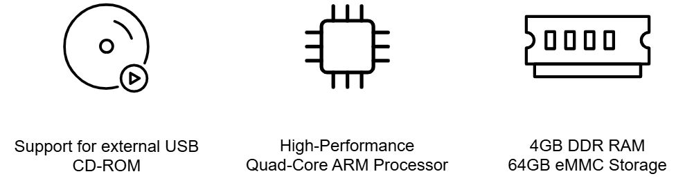 4GB DDR RAM 64GB eMMCストレージ