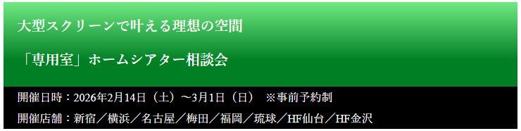 さて、本日よりアバックの各店では「専用室」ホームシアター相談会を各店で開催します。