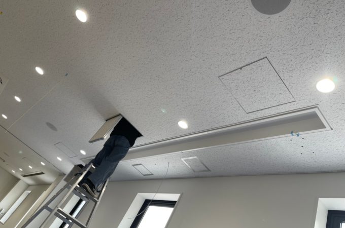 アバック鳥取店 山本です。 会議室兼シアター室。7.1.6chシステムのお部屋を現在施工しております。 写真は天井裏のスピーカーケ...